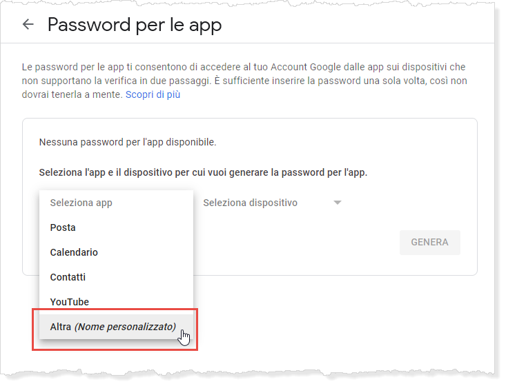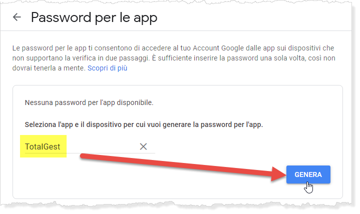Cioè si crea una password specifica e valida solo per l'invio da TotalGest (sistema chiamato da Google: accedere con una password per app)
