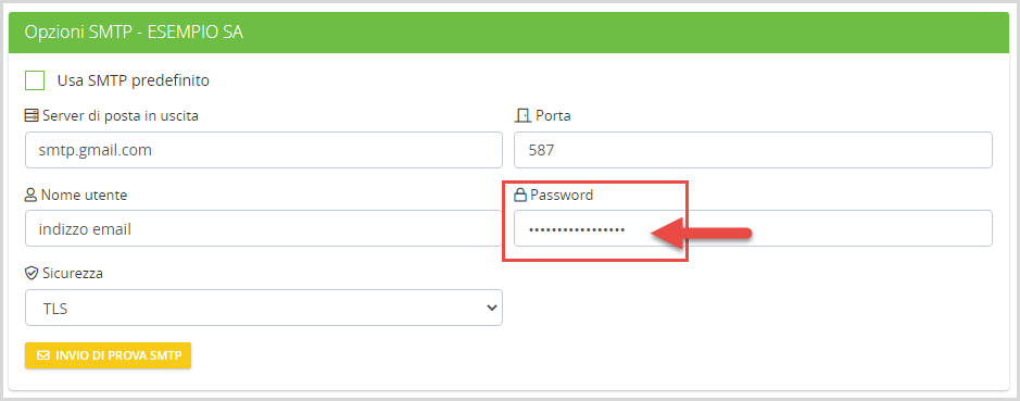 Questo significa che l'account deve essere impostato per inviare da software di terze parti (TotalGest) con una password dedicata specifica (che è diversa da quella del vostro account).