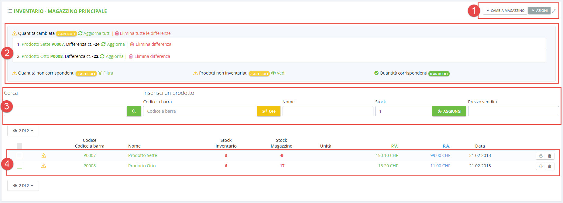 (2) Quantità cambiate nel corso dell'inventario (ad es.: mentre si sta facendo l'inventario, il negozio ha venduto un prodotto che si sta inventariando)