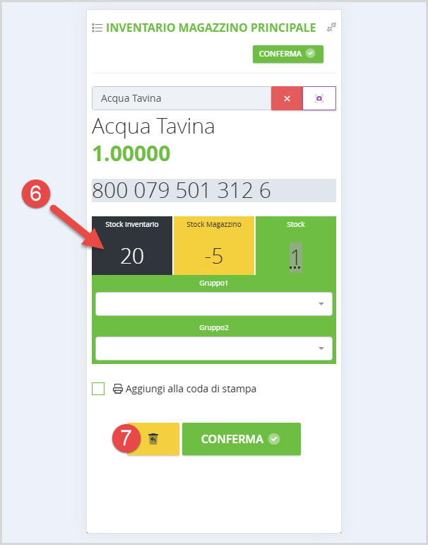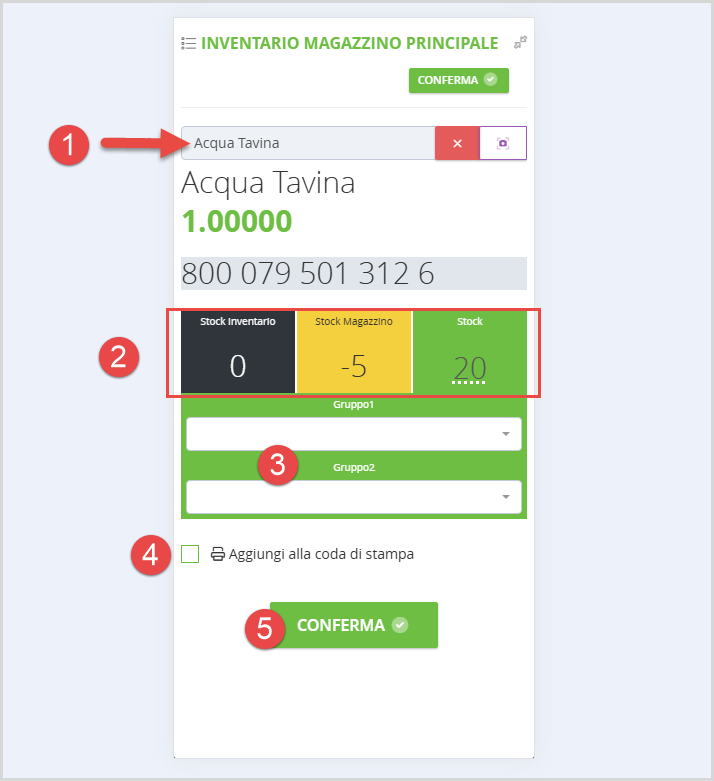 Stock = numero di pezzi che si sta inventariando con l'attuale scansione