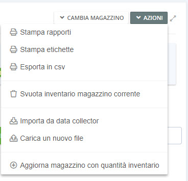 Nota: ogni magazzino può avere 1 solo inventario aperto (non ultimato)