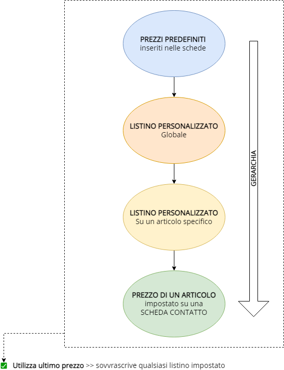 Tutte le impostazioni sopra elencate vengono bypassate se nelle impostazioni è selezionata la voce "Utilizza ultimo prezzo..."
