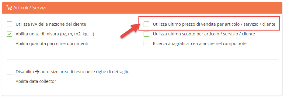 - PREZZI PREDEFINITI nella scheda di un articolo o di un servizio