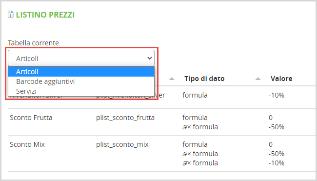 Al momento in cui si salva un nuovo listino, per impostazione predefinita, questo viene creato nel magazzino degli articoli, negli eventuali barcode aggiuntivi e nel magazzino virtuale dei servizi.