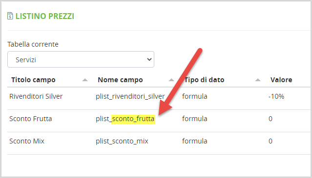 Per slegare questa connessione tra i 3 listini, è sufficiente cancellare il listino nella tabella desiderata: