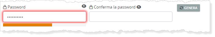 (5) La password deve rispettare le indicazioni del punto precedente. Viene indicato il livello di sicurezza man mano che si digita la password: