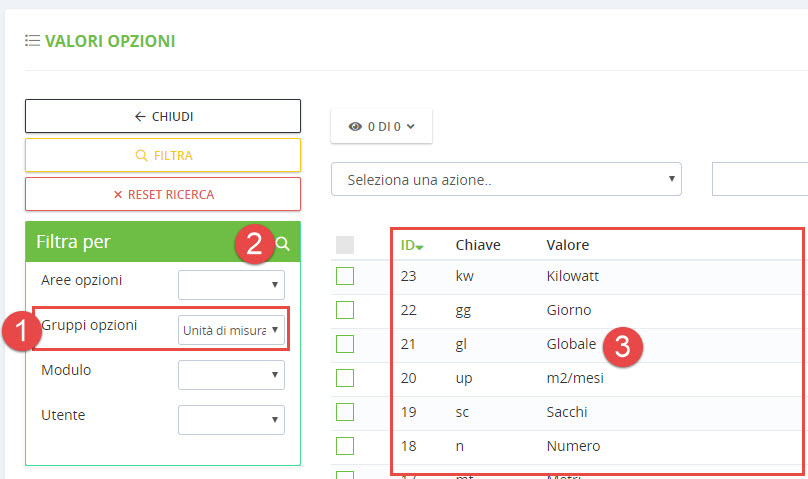 Si possono ora vedere (3) tutte le unità di misura presenti, modificarle, cancellarle o crearne di nuove.