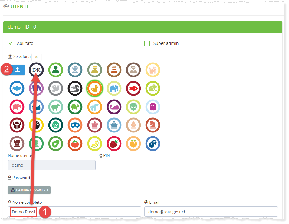 Nome utente: nome col quale si accede a TotalGest