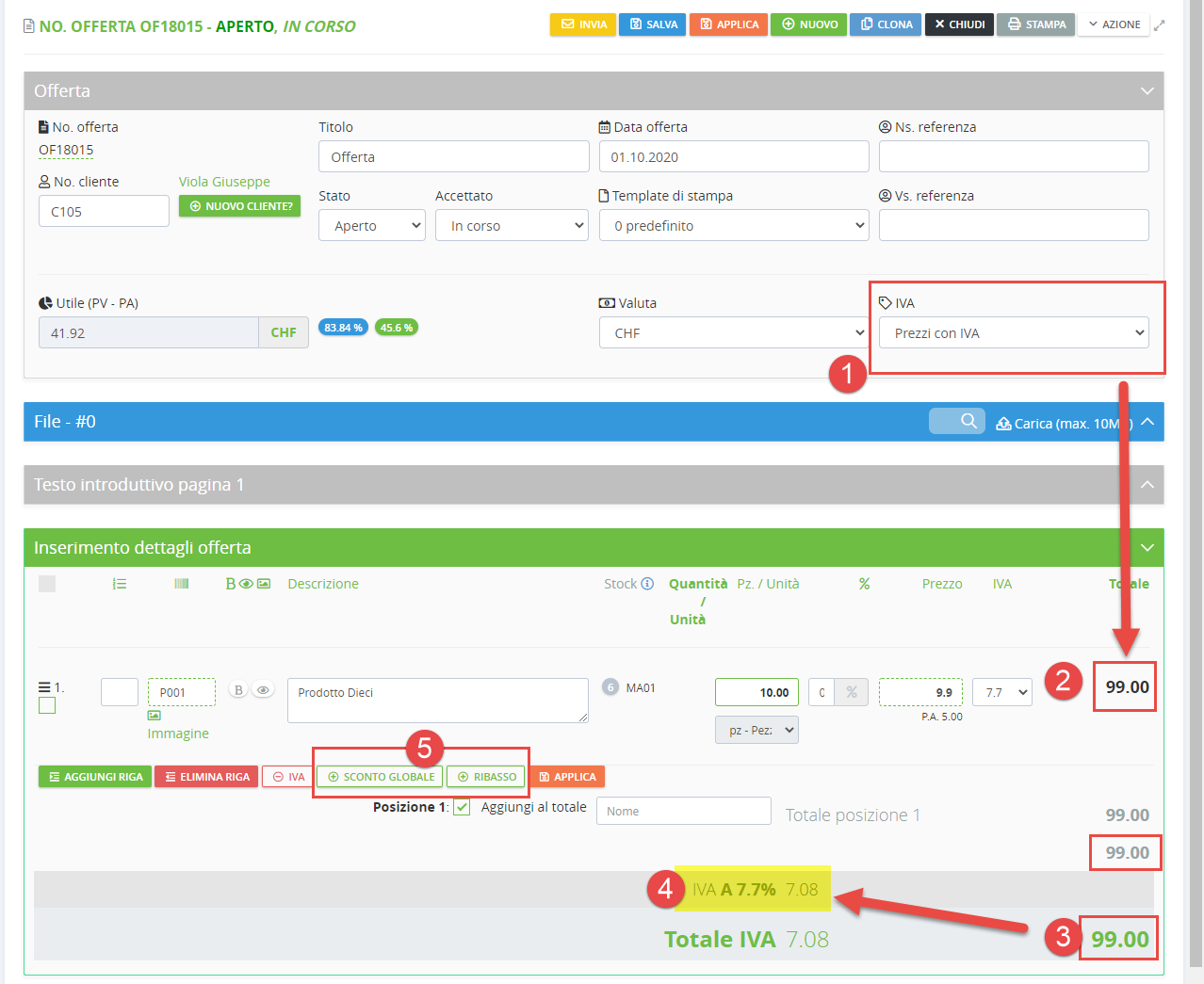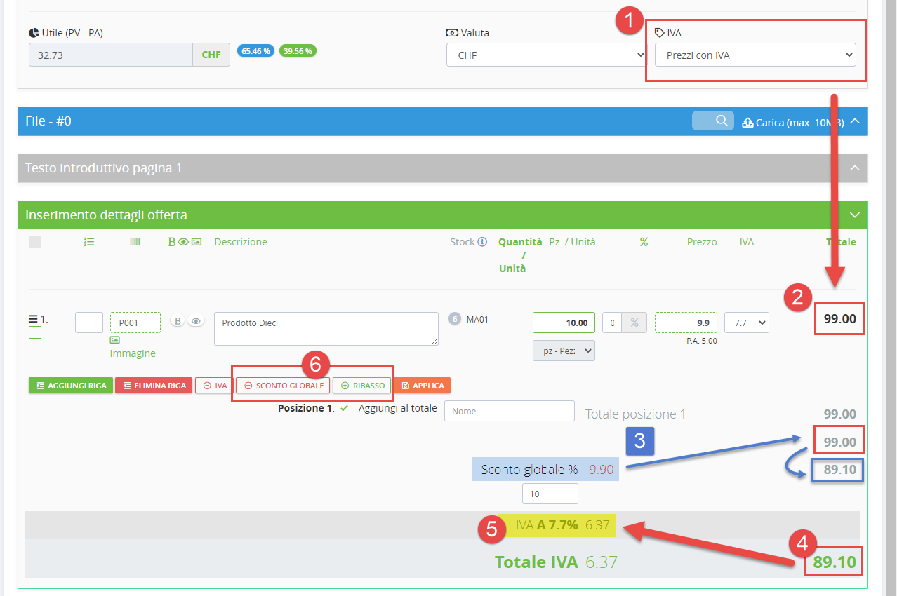 (6) In questo esempio c'è lo sconto globale e non ci sono ribassi.