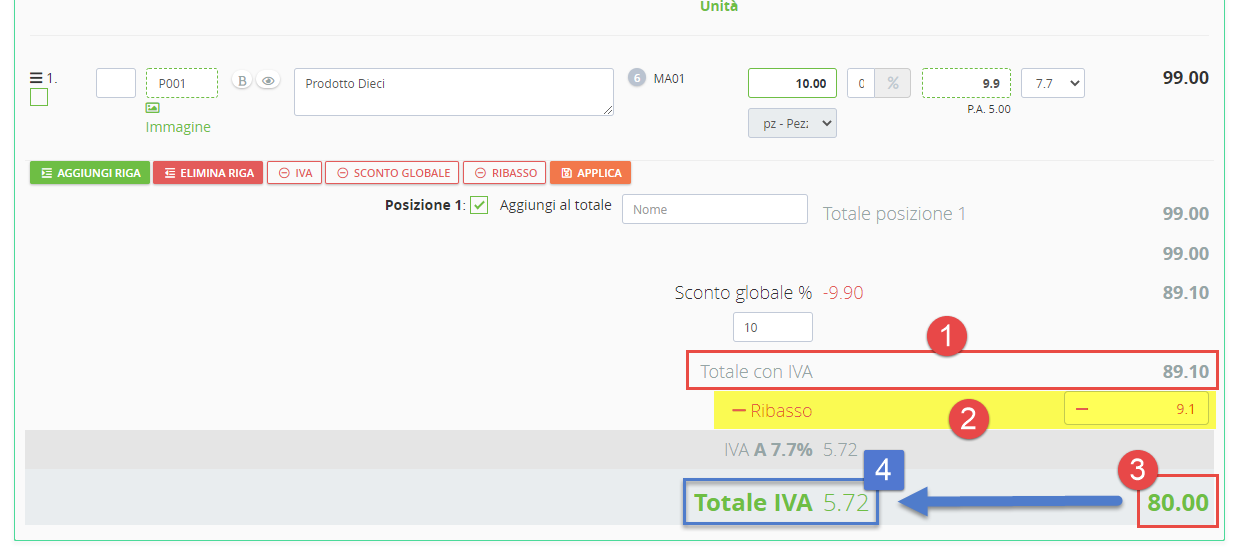 (4) Importo IVA del documento calcolato partendo dal totale del punto precedente