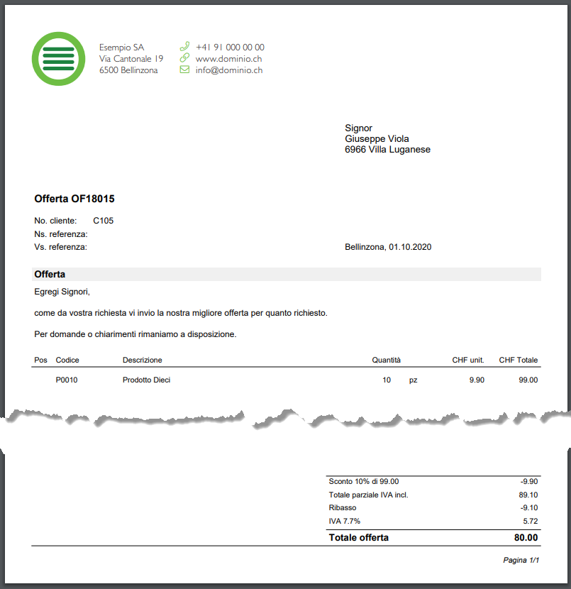 All'esempio precedente aggiungiamo quindi un ribasso: