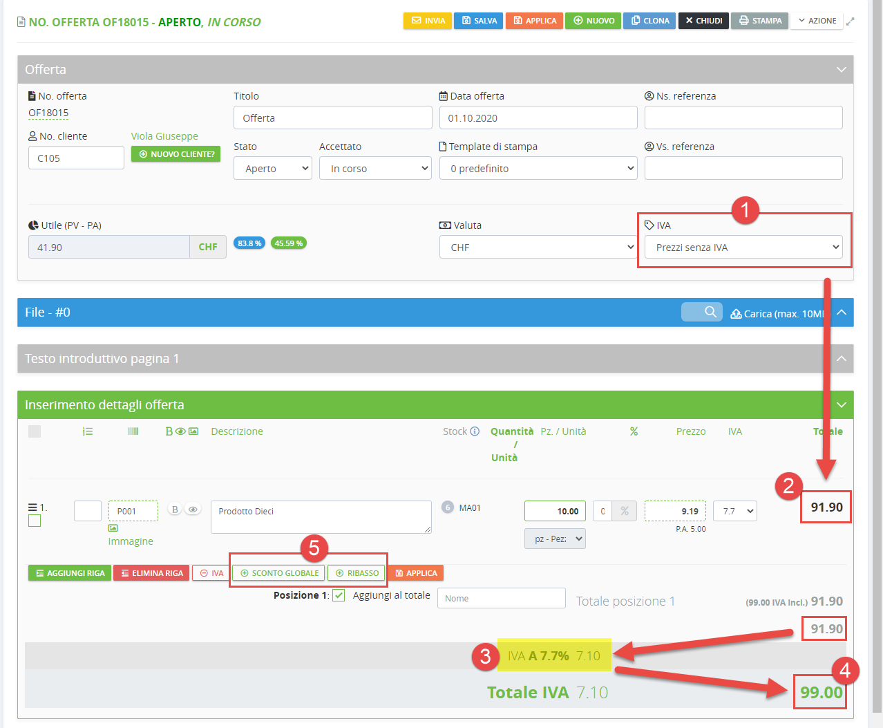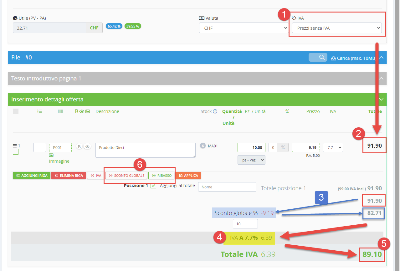 (6) In questo esempio c'è lo sconto globale e non ci sono ribassi.