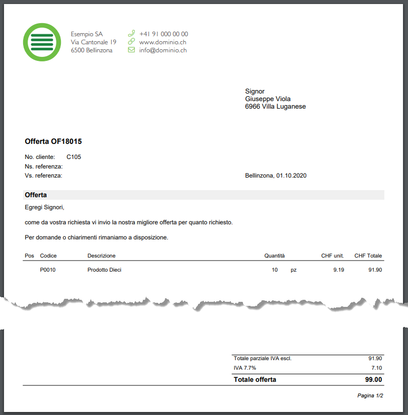 Il PDF di questa offerta è generato in questo modo: